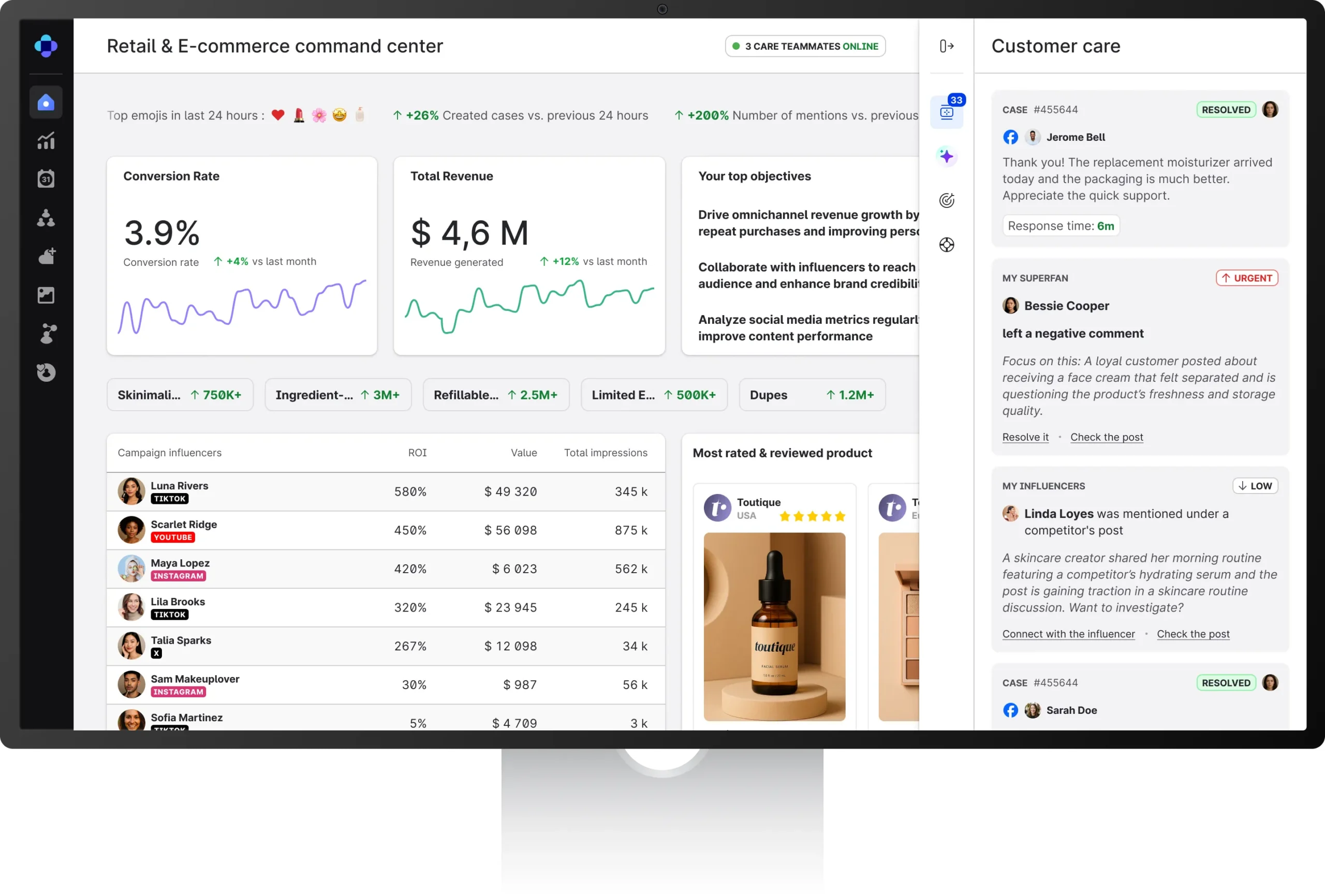 Yes. Emplifi provides visibility into how shoppable content, influencer campaigns, and customer interactions contribute to site traffic, product views, and completed transactions. This helps retail teams understand which engagement strategies drive real business impact.